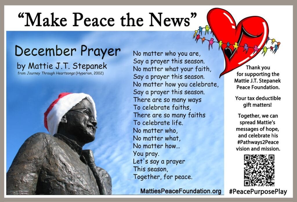 An end-of-year and look ahead #MamaPeacePost from Jeni Stepanek – “Make Peace the News” in every community.