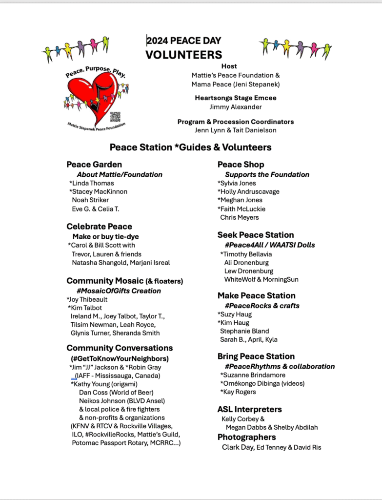 Performs at Mattie’s Peace Day